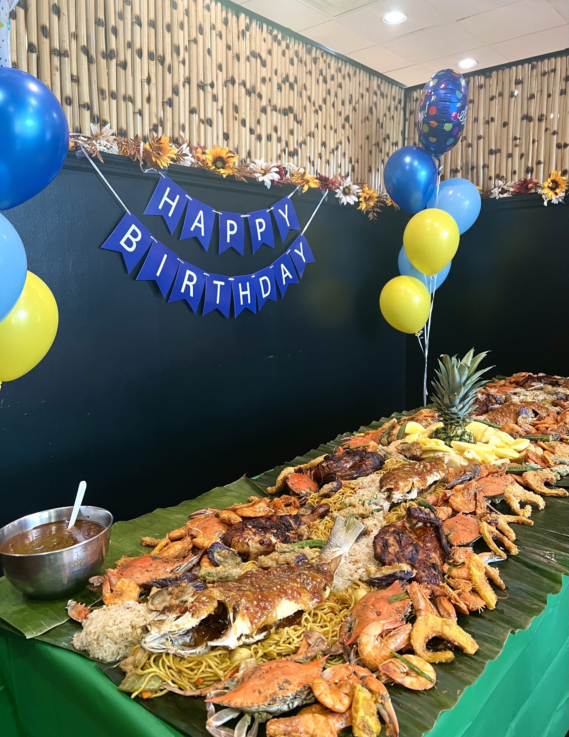 a vibrant spread of grilled meats, seafood, noodles, and classic favorites served family-style.