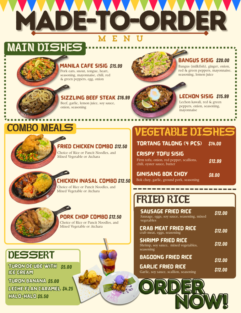 made hot and flavorful just for you. Served daily from 10:00 AM to 6:30 PM. Ask our servers for the menu and details.